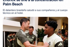 恩德里克將加入皇馬在佛羅里達棕櫚灘的集訓。恩德里克抵達了球隊下榻的酒店,在那里他問候了他的隊友和哈維-阿隆索教練組。