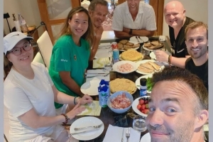 賽前,鄭欽文在社媒曬出了自己溫網(wǎng)團(tuán)隊(duì)聚餐的照片,并寫道:“團(tuán)隊(duì)晚餐在住所內(nèi)舉行,猜猜誰是主廚? ”