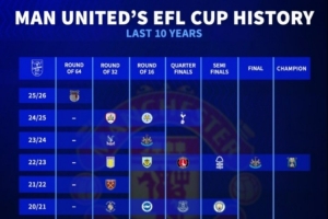 據(jù)德轉(zhuǎn)統(tǒng)計(jì),在該項(xiàng)賽事第二輪便遭到淘汰,這也創(chuàng)下了曼聯(lián)近10年參加聯(lián)賽杯最差戰(zhàn)績(jī)。