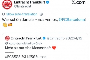 在抽簽出爐后,法蘭克福官推轉(zhuǎn)發(fā)了22年4月,球隊在歐聯(lián)杯1/4決賽次回合客場3-2擊敗巴薩晉級下一輪的賽后球隊合影慶祝勝利的社媒,并配文寫道:“那是一段美妙的經(jīng)歷,期待我們的再次相見,巴薩!”
