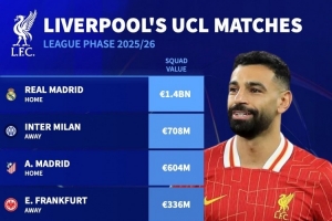 體育資訊8月29日訊 本賽季歐冠聯(lián)賽階段對陣抽簽結(jié)果出爐,德國轉(zhuǎn)會(huì)市場盤點(diǎn)了利物浦對手的身價(jià)。