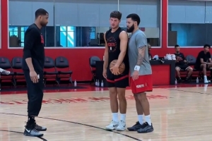 體育資訊8月29日訊 今日火箭官媒曬出謝潑德和范弗里特一起訓(xùn)練的視頻,期間范弗里特不忘在突破方面對(duì)著小將指點(diǎn)一番。