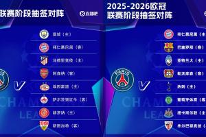 體育資訊08月29日訊 25/26賽季歐冠聯(lián)賽階段抽簽出爐,巴黎的簽運(yùn)不佳,又是一眾豪門(mén)勁旅。對(duì)比上賽季有過(guò)之而無(wú)不及。