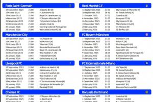 體育資訊08月30日訊 歐足聯(lián)官方公布?xì)W冠聯(lián)賽階段賽程,歐冠正賽聯(lián)賽階段共36隊(duì),每支球隊(duì)進(jìn)行4主4客8場(chǎng)比賽。聯(lián)賽階段結(jié)束后,前8名直接晉級(jí)淘汰賽,第9名-第24名將參加淘汰賽附加賽,具體對(duì)陣由抽簽決定。