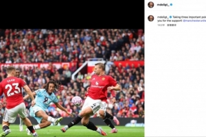 體育資訊8月31日訊 英超第3輪,曼聯(lián)主場3比2擊敗伯恩利,艱難地取得聯(lián)賽首勝。德里赫特社媒感謝球迷支持。