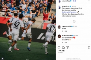 賽后堂安律社媒曬出和隊(duì)友慶祝照,并配文寫道:“兩戰(zhàn)兩勝,而且我收獲了法蘭克福生涯的德甲首球,多么美妙的一天!國(guó)際比賽日后再見!”