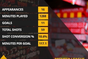 薩拉赫英超對阿森納已打入11球,僅次魯尼和凱恩