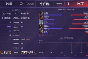 體育資訊8月31日訊 今日LCK第三賽段迎來NS對(duì)陣KT的比賽,KT以2-0的比分橫掃NS!首局Cuzz皇子前期完美節(jié)奏奠定勝局;次局雙方頻繁亂戰(zhàn),KT雙C發(fā)力終結(jié)比賽。