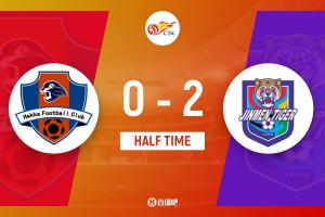 半場戰(zhàn)罷,天津津門虎暫2-0梅州客家。