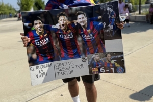 邁阿密國際對陣巴黎的世俱杯1/8決賽即將在北京時間0點打響,本場比賽也吸引了一位來自洪都拉斯的巴薩球迷,他將帶著特制的MSN(梅西、蘇亞雷斯、內(nèi)馬爾)海報來為梅西加油。