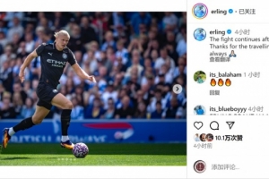 這是哈蘭德出戰(zhàn)的第100場英超比賽,他取得進(jìn)球,但曼城落敗,賽后哈蘭德在社交媒體上寫道:“休賽期后戰(zhàn)斗繼續(xù),感謝球迷在客場一如既往的支持。”