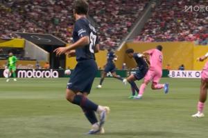 體育資訊06月30日訊 巴黎vs邁阿密第32分鐘,蘇亞雷斯背后放倒馬爾基尼奧斯,裁判沒有判罰。