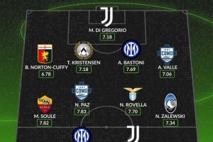 后衛(wèi):諾頓-庫菲(熱那亞,6.78分)、T-克里斯滕森(烏迪內(nèi)斯,7.18分)、巴斯托尼(國米,7.69分)、亞歷克斯-瓦萊(科莫,7.06分)