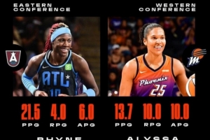 體育資訊9月3日訊 今日WNBA官方宣布,亞特蘭大夢想球員萊恩-霍華德、鳳凰城水星球員艾莉莎-托馬斯分別當(dāng)選第13周東西部周最佳球員。