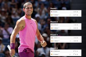 阿爾卡拉斯至今5輪未丟一盤,若能延續(xù)狀態(tài),他將有望成為史上首位不失一盤奪得美網(wǎng)男單冠軍的球員!