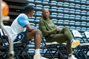 美國(guó)籃球名人堂成員、前NBA全明星雷-阿倫到訪北卡大學(xué)男籃的訓(xùn)練館,出席球隊(duì)訓(xùn)練,并對(duì)球員們的表現(xiàn)進(jìn)行觀摩和指導(dǎo)。照片中出現(xiàn)的有今年大一新生、2025屆全美第五的Caleb Wilson(圖一)、還有前NBA球員肖恩-梅(圖二下)等人。
