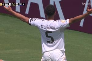 比賽第35分鐘,弗蘭-加西亞橫敲,貝林厄姆突入禁區(qū),左腳抽射破門!場(chǎng)上比分皇馬1-0帕丘卡。