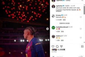 諾坎普首戰(zhàn)傷愈回歸,拉菲尼亞社媒紀(jì)念:回到家的感覺(jué)真好!