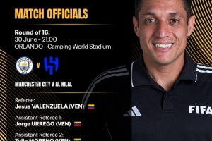 FIFA官方宣布,委內(nèi)瑞拉的裁判組將執(zhí)法本場比賽:
