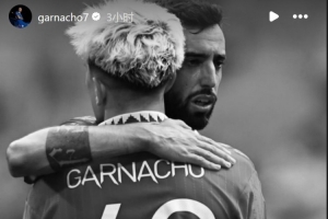 加納喬社媒曬出自己與前隊友B費的賽場合照,當時他身穿曼聯(lián)49號球衣。