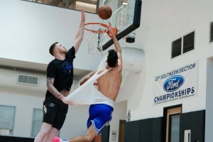 體育資訊9月4日訊 今日雷霆球員霍姆格倫更新社媒曬出和隊友哈爾滕施泰因一起訓練的照片。