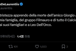 德勞倫蒂斯寫道:“我懷著萬分悲痛的心情得知我的朋友喬治-阿瑪尼去世。謹(jǐn)代表我的家人、Filmauro集團(tuán)以及整個那不勒斯俱樂部,向他的家人和萊奧-德爾奧爾科(阿瑪尼的副手)表示深切慰問?!?/p>