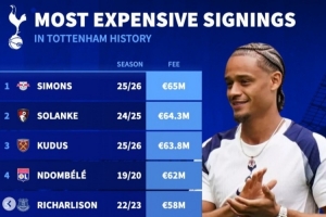 體育資訊9月5日訊 熱刺主席列維官宣退休,《轉(zhuǎn)會市場》也統(tǒng)計(jì)了他執(zhí)掌熱刺期間的最貴引援情況,孫興慜未進(jìn)入前十。