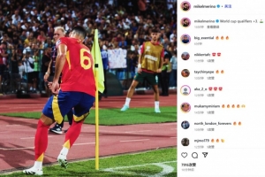 他也在賽后通過社媒曬出了自己的招牌繞角旗桿慶祝照,并配文:“世預(yù)賽+3分!??”