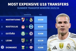 德轉(zhuǎn)今夏U18最貴轉(zhuǎn)會(huì)榜:歐元