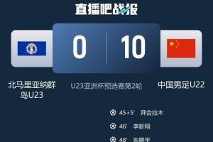 體育資訊9月6日訊 U23亞洲杯預(yù)選賽小組賽第2輪,U22國(guó)足以10-0的比分擊敗北馬里亞納群島U23,下輪將和澳大利亞U23爭(zhēng)奪小組頭名。