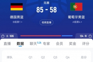 體育資訊9月6日訊 男籃歐錦賽1/8決賽,葡萄牙男籃58-85不敵德國(guó)男籃。