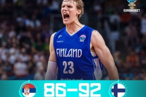 體育資訊9月7日訊 今日男籃歐錦賽1/8決賽,芬蘭92-86戰(zhàn)勝塞爾維亞。