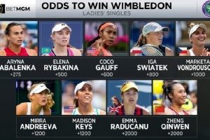 體育資訊6月30日訊 溫網(wǎng)今天將展開爭(zhēng)奪,在女單奪冠賠率上,中國(guó)選手鄭欽文位列第八。其他選手中,薩巴倫卡排名第一、萊巴金娜第二,高芙第三,斯瓦泰克第四。