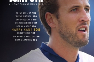 在英格蘭2-0安道爾的比賽中,凱恩迎來了在英格蘭隊(duì)的第108次出場,追平博比-摩爾,并列英格蘭隊(duì)史第5。