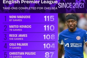體育資訊9月7日訊 squakwa統(tǒng)計了20-21賽季以來的切爾西英超成功過人情況,馬杜埃凱居首,僅3人仍在陣中。