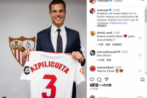 阿斯皮利奎塔自由身加盟塞維利亞,他在社交媒體上曬出展示球衣的照片,并寫道:“懷揣著不變的熱情與一如既往的承諾,開啟嶄新征程。感謝塞維利亞的信任?!?/p>