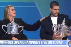 兩位冠軍一起參加節(jié)目,薩巴倫卡誤把阿爾卡拉斯叫成了辛納。