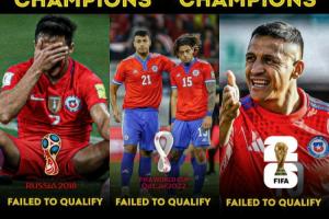 而智利17戰(zhàn)僅得10分提前出局,無緣美加墨世界杯。曾經(jīng)在2015、16年連奪兩屆美洲杯的智利,連續(xù)3屆無緣世界杯決賽圈,令人唏噓。
