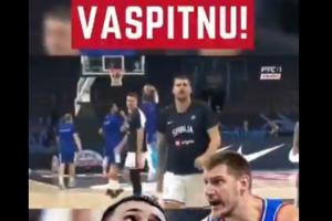 塞爾維亞VS芬蘭的賽前熱身時,約基奇走過約維奇身邊給了一巴掌,約維奇有點懵。