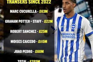 知名英媒talkSPORT曬出切爾西近些年在布萊頓身上花費(fèi)的錢。藍(lán)軍在海鷗身上已經(jīng)砸了將近3個(gè)億。