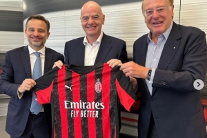 體育資訊9月11日訊 不久前,國(guó)際足聯(lián)主席因凡蒂諾造訪米蘭總部,并與米蘭高層合影。