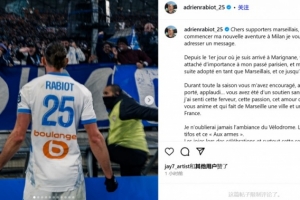 拉比奧特寫道:“親愛(ài)的馬賽球迷,在我開(kāi)啟米蘭的新冒險(xiǎn)之前,我想給你們寫一條留言。從我第一天抵達(dá)馬賽開(kāi)始,你們從未在意我過(guò)去在巴黎的經(jīng)歷,反而立刻接納了我,把我當(dāng)成馬賽人,直到我離開(kāi)。”