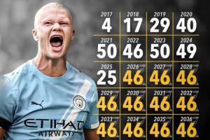 體育資訊09月11日訊 據(jù)外媒Score90統(tǒng)計,哈蘭德職業(yè)生涯目前已經(jīng)打進了310球,如果他想達成C羅正在追求的生涯1000球里程碑,他需要從明年開始到2040年每年都打進46球。