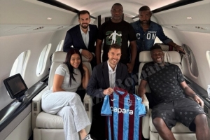 羅馬諾社媒曬出奧納納與家人、經(jīng)紀(jì)人在飛機(jī)上展示特拉布宗體育球衣的照片。
