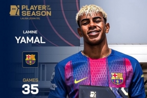 體育資訊9月12日訊 《轉(zhuǎn)會市場》官方宣布,18歲的巴薩邊鋒亞馬爾當(dāng)選德轉(zhuǎn)評選的24-25賽季西甲MVP。