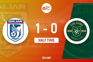 半場(chǎng)戰(zhàn)罷,大連英博暫1-0浙江隊(duì)。