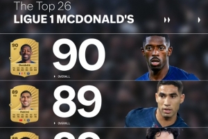 體育資訊9月13日訊 FC26公布了法甲球員評(píng)分榜,其中登貝萊居首,具體如下: