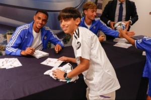 體育資訊9月13日訊 據(jù)西班牙六臺(tái)報(bào)道,皇馬后衛(wèi)阿諾德和赫伊森為皇馬小球迷們簽名,并合影留念。