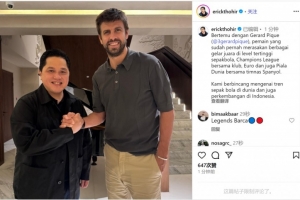 托希爾與皮克會面,他在社交媒體上曬出合照,配文:“與皮克會面,他是一位在足球最高級別賽事中贏得過多項冠軍頭銜的球員,包括俱樂部層面上的歐冠冠軍,以及代表西班牙國家隊贏得的歐洲杯和世界杯。我們討論了全球足球趨勢以及印尼足球的發(fā)展?!?/p>