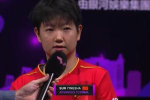 體育資訊09月14日訊 WTT冠軍賽中國澳門站女單半決賽,孫穎莎4-1戰(zhàn)勝蒯曼,順利晉級決賽。賽后孫穎莎接受了采訪。